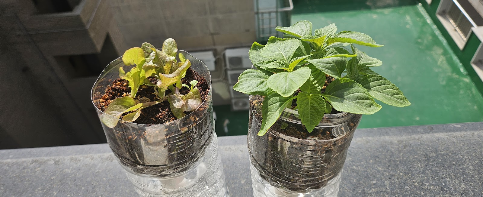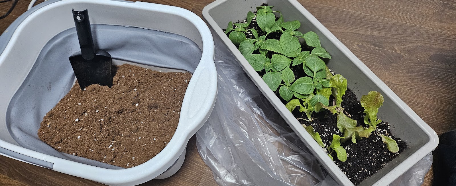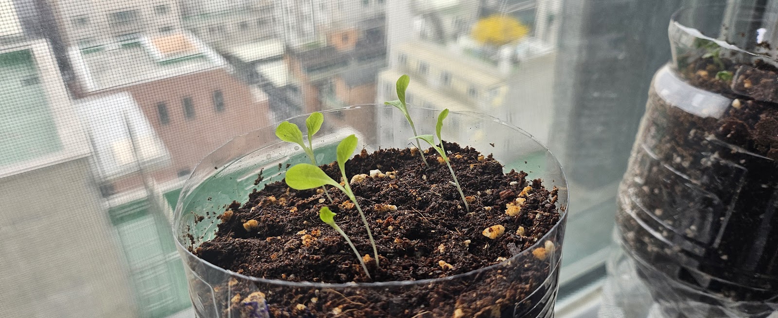 깻잎과 상추 씨앗을 뿌리고 흙을 살짝 덮은 뒤, 물을 한 번 주고 창가에 자리잡았다.