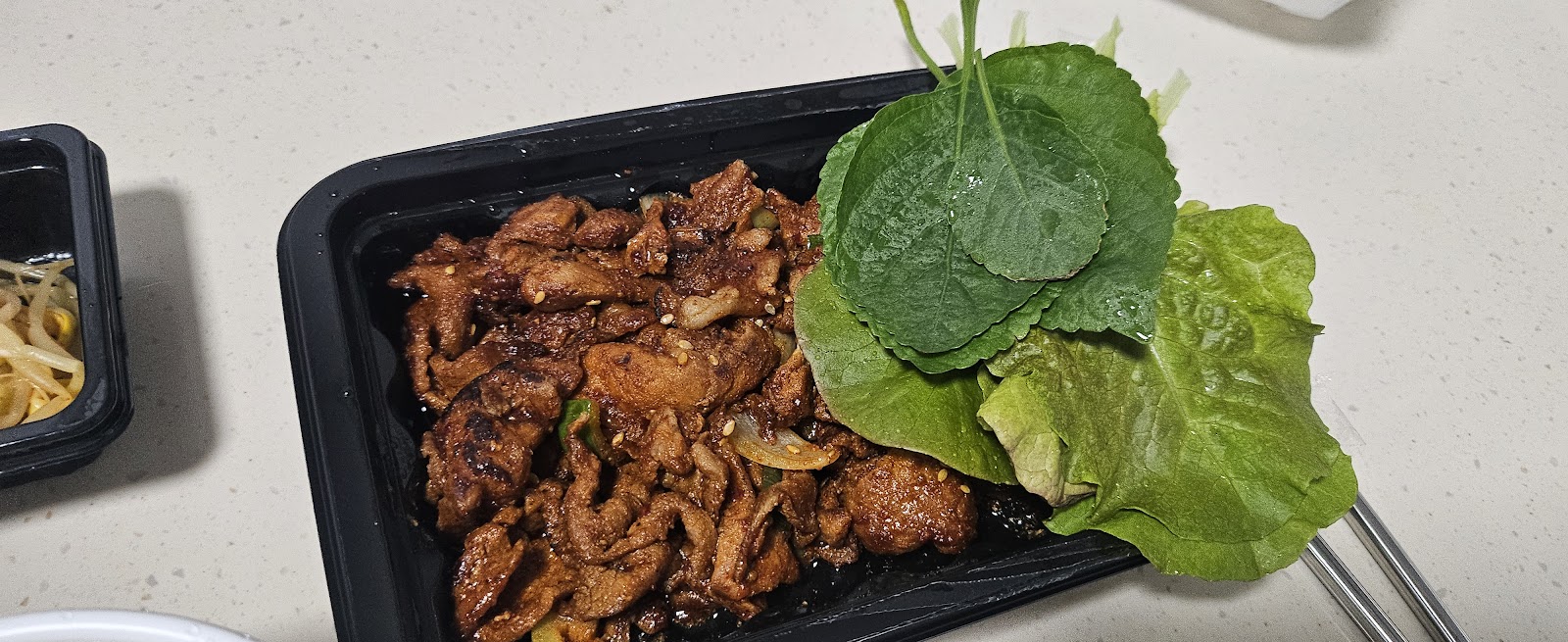 주문한 제육과 같이 먹어봤는데, 진짜 상추와 깻잎 맛이 나는 것이 당연하면서도 신기하게 느껴졌다.
