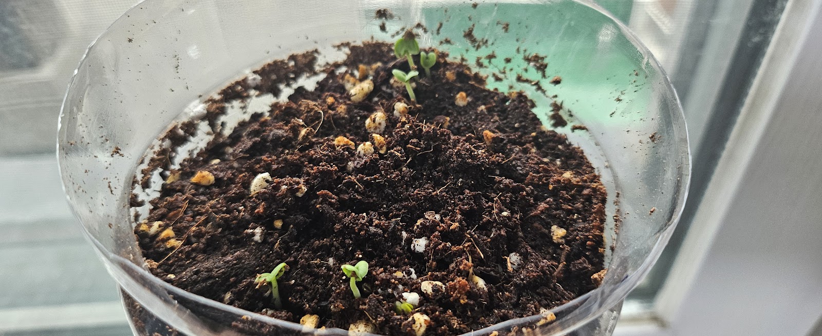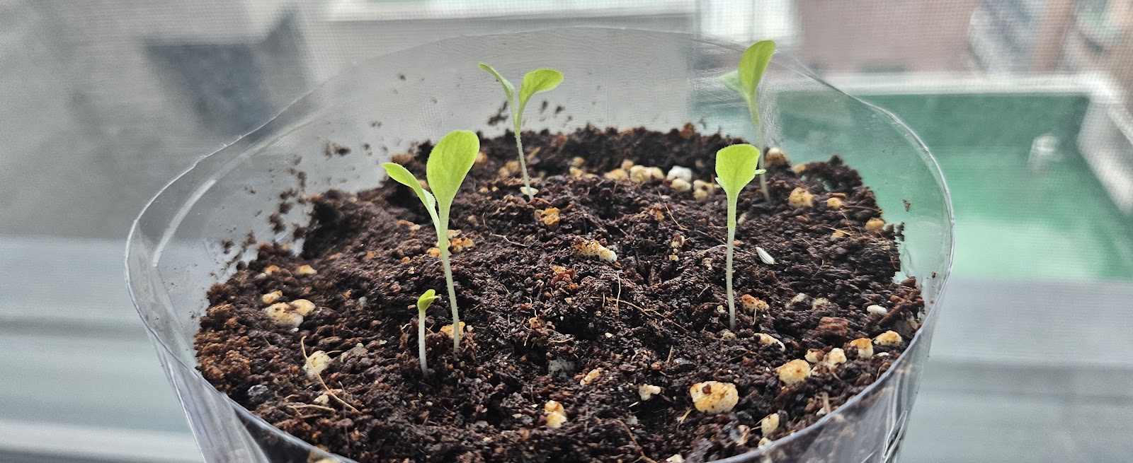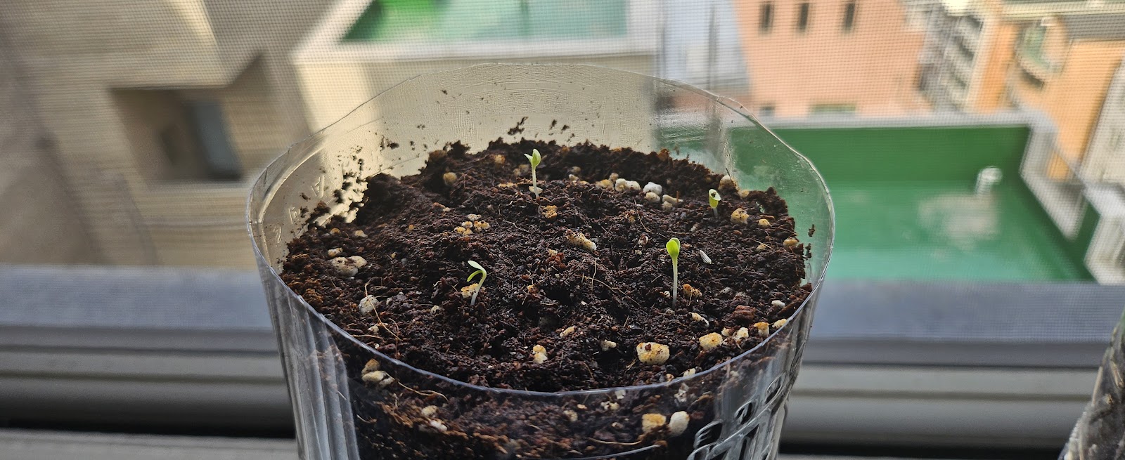 발아는 그늘에서 하는게 좋다고 하던 것 같은데 씨앗을 꽤 많이 뿌렸기 때문에 몇 개만 걸려라 식으로 그냥 창가에 두었다.