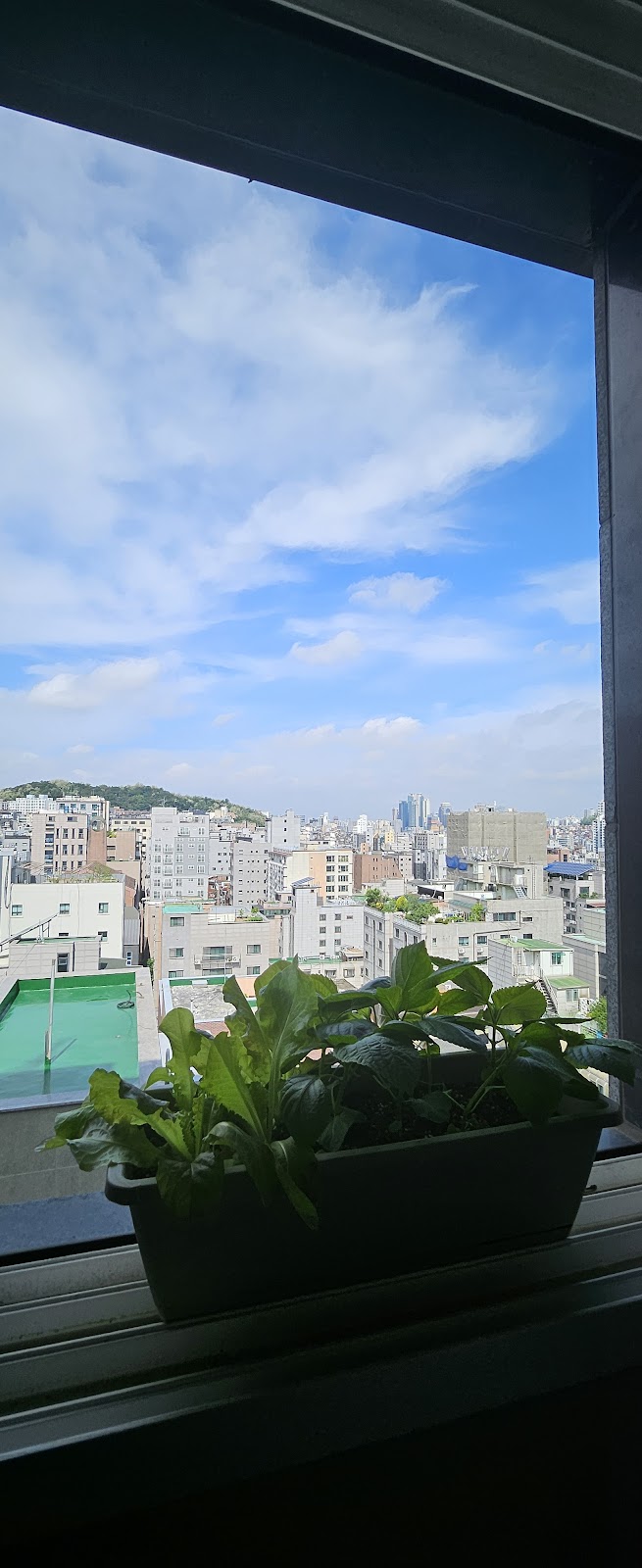 이중창이라 방충망과 안쪽 샷시 사이에서 키우고 있는데 생각보다 잘 자라주고 있다.