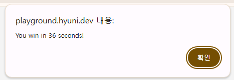 모든 지뢰를 다 찾으면 게임 승리 창도 띄워준다.