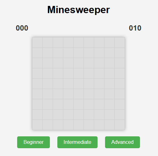 Beginner는 9 x 9 칸에서 10개의 지뢰를,