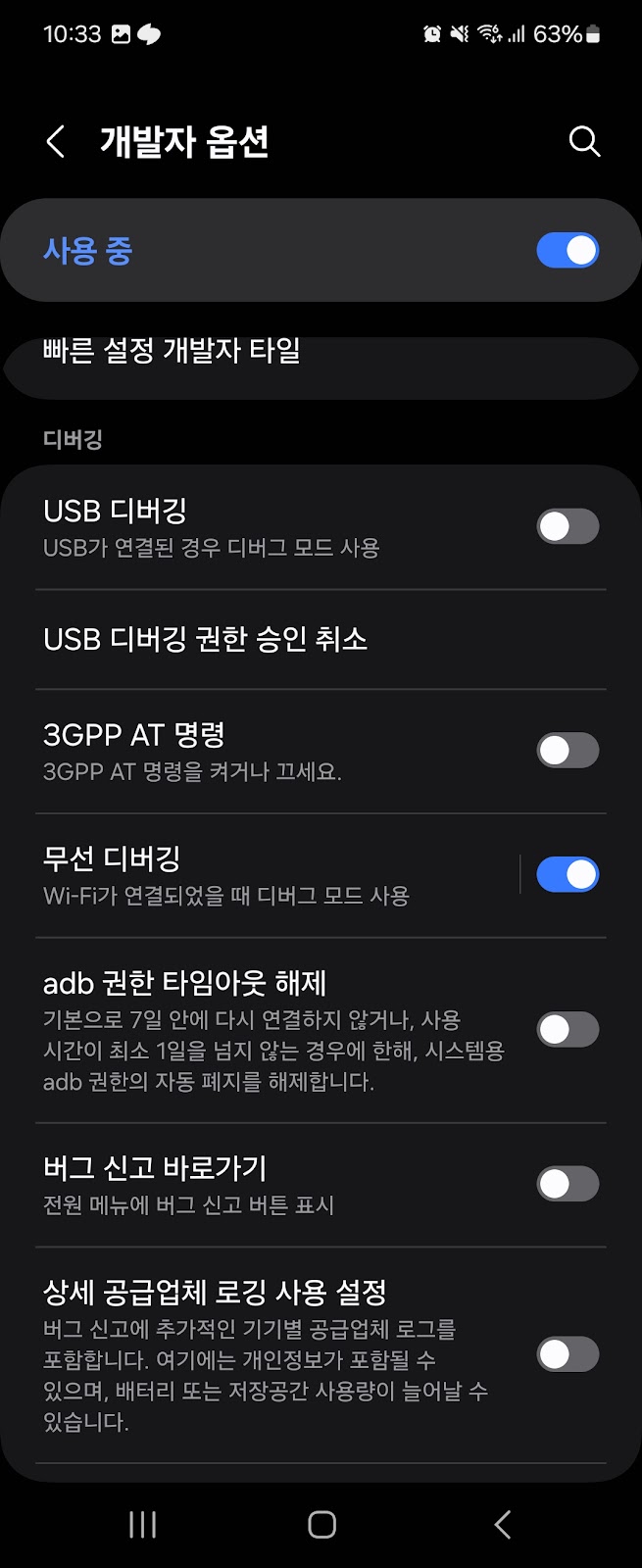 무선 디버깅 활성화