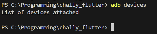 adb devices 명령어로 연결된 안드로이드 디바이스를 확인해보면 아무것도 출력되지 않는다는 것을 알 수 있다. 대신 한 번 존재를 확인시켜주었으니 다음에 무선 연결을 할 때에는 별도의 페어링 과정이 필요하지 않다.