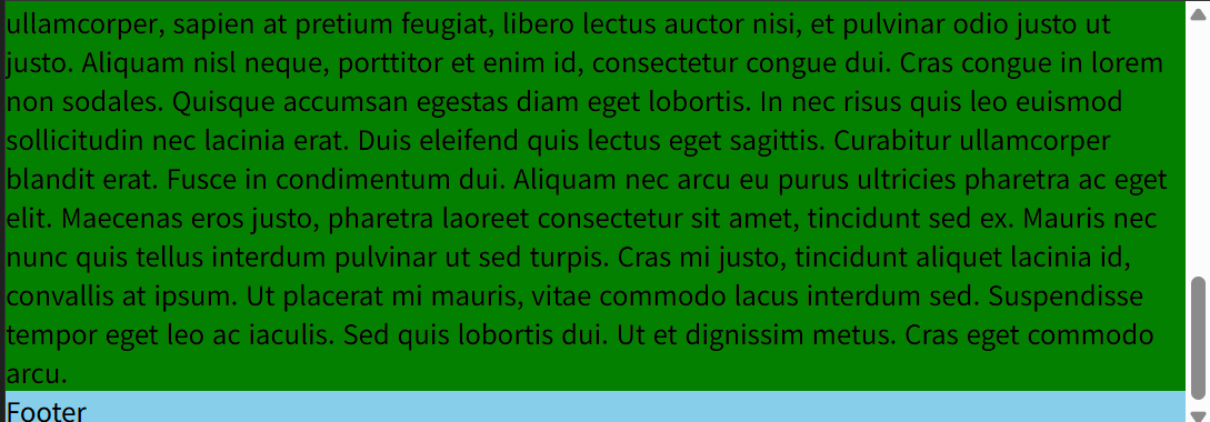 내용이 짧으면 알아서 페이지의 하단에 붙고, 내용이 길다면 스크롤해야 보이는 Footer를 만들어보자.